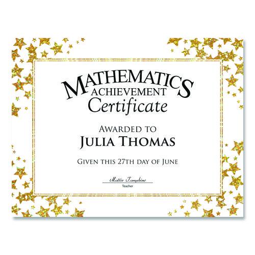 Product Details** Global Product Type Printable Certificates Shape Rectangular Color Family White Paper Basis Weight (lb) 24 lb Bond Theme Gold Star Color(s) White Border Color(s) Gold/White Width 8.5″ Height 11″ For Use With Geographics® Certificate/Document Cover: Black, Black Tree Free, Metallic Blue, Navy Blue, Navy Blue Tree Free Product Biodegradability Indicator N Product Biodegradability in Days 0 Product Compostability Indicator N Pre-Consumer Recycled Content Percent 0% Post-Consumer Recycled Content Percent 0% Total Recycled Content Percent 0% Country Of Origin CN Carton Weight 3 lbs. Carton Pack Quantity 10 PK Pack Quantity 25 EA UPC 071064499512 UNSPSC 49101705 Shipping Weight & Item Dimensions Weight 1 lbs. Length 0.4 in Height 11.25 in Width 8.75 in