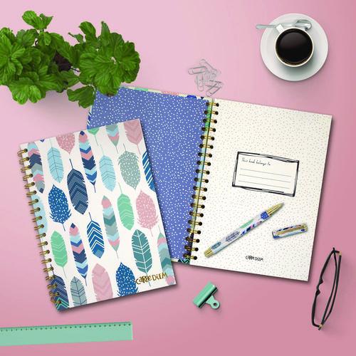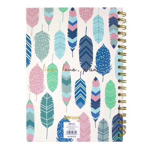 Product Details** Global Product Type General Purpose Notebooks Pocket Sized No Book-Binding Type Wire-O Color Family Multicolor Number of Subjects/Sections 1 Sheet Size (Bound-Side First) 9.8 x 6.9 Sheet Rule/Format Type Medium/College Rule Book-Binding Details Wire-O: Hard Cover Book-Binding Edge Side Cover Design/Theme Feathers Cover Color Cream/Pink/Blue Book-Spine Length 9.84″ Book Width 7.09″ Front-Cover Material Hard Back Back-Cover Material Hard Back Sheets per Book/Journal 80 Sheet Color White Sheet Ruling Size 8 mm Note-Rule Lines per Sheet 28 Sheet-Ruling Color Gray Sheet Perforation Details Micro-Perforation Sheet Basis Weight (lb) 21 lb Bond Dated No Product Biodegradability Indicator N Product Biodegradability in Days 0 Product Compostability Indicator N Pre-Consumer Recycled Content Percent 0% Post-Consumer Recycled Content Percent 0% Total Recycled Content Percent 0% Disclaimer Statement This product was made using wood sourced from a certified managed forest. Footnote 1 Paper Weight (gsm): 80 gsm Country Of Origin CN Carton Weight 12 lbs. Carton Pack Quantity 4 PK Pack Quantity 3 EA UPC 000000000000 UNSPSC 14111514 Shipping Weight & Item Dimensions Weight 3.01 lbs. Length 7.02 in Height 1.17 in Width 9.75 in