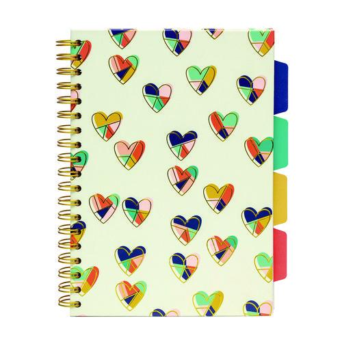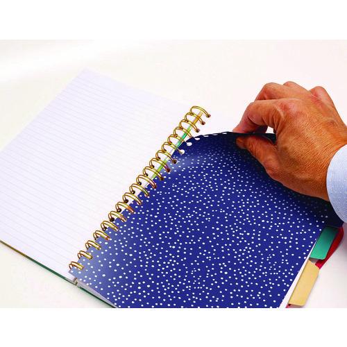 Product Details** Global Product Type Business Notebooks & Journals Pocket Sized No Book-Binding Type Wire-O Color Family Multicolor Number of Subjects/Sections 5 Sheet Size (Bound-Side First) 9.8 x 6.9 Sheet Rule/Format Type Medium/College Rule Book-Binding Details Wire-O: Hard Cover Book-Binding Edge Side Cover Design/Theme Assorted Cover Color Assorted Cover Color Assortment Multicolor Carpe Diem Geometric,Multicolor Floral,Multicolor Hearts Book-Spine Length 9.84″ Book Width 7.48″ Front-Cover Material Hard Back Back-Cover Material Hard Back Number of Section Dividers 4 Sheets per Book/Journal 100 Sheet Color White Sheet Ruling Size 7.14 mm Note-Rule Lines per Sheet 32 Sheet-Ruling Color Gray Sheet Perforation Details Micro-Perforation Sheet Basis Weight (lb) 21 lb Bond Dated No Product Biodegradability Indicator N Product Biodegradability in Days 0 Product Compostability Indicator N Pre-Consumer Recycled Content Percent 0% Post-Consumer Recycled Content Percent 0% Total Recycled Content Percent 0% Disclaimer Statement This product was made using wood sourced from a certified managed forest. Footnote 1 Paper Weight (gsm): 80 gsm Country Of Origin CN Carton Weight 15 lbs. Carton Pack Quantity 4 PK Pack Quantity 3 EA UPC 000000000000 UNSPSC 14111514 Shipping Weight & Item Dimensions Weight 11.187 lbs. Length 9.75 in Height 1.17 in Width 7.41 in