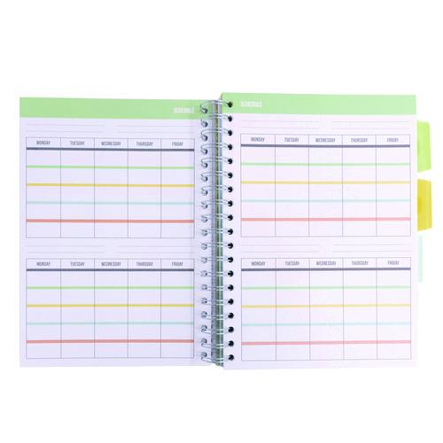 Product Details** Global Product Type Student Assignment Organizers Pocket Sized No Book-Binding Type Wire-O Color Family Multicolor Number of Subjects/Sections 4 Sheet Size (Bound-Side First) 9.8 x 6.9 Sheet Rule/Format Type Dotted Rule,Homework/Assignment-Tracking Format,Medium/College Rule,Quadrille Rule Book-Binding Details Wire-O: Flexible Cover Book-Binding Edge Side Cover Design/Theme Study Book Cover Color Gray/White Book-Spine Length 9.84″ Book Width 7.48″ Front-Cover Material Card Back-Cover Material Card Number of Section Dividers 4 Sheets per Book/Journal 100 Sheet Color White Sheet Rule/Format Details Class Schedule Pages,Drawing/Design Pages,Exam Prep Pages,Important Dates Page,Notes Pages,Study-Goal Outlines,Study Tips & Tricks Sheet Ruling Size 8 mm,5 mm Sheet-Ruling Color Gray Sheet Perforation Details Micro-Perforation Sheet Basis Weight (lb) 21 lb Bond Number of Pockets 4 Pocket Details Loose-Sheet Pockets Dated No Product Biodegradability Indicator N Product Biodegradability in Days 0 Product Compostability Indicator N Pre-Consumer Recycled Content Percent 0% Post-Consumer Recycled Content Percent 0% Total Recycled Content Percent 0% Disclaimer Statement This product was made using wood sourced from a certified managed forest. Footnote 1 Paper Weight (gsm): 80 gsm Country Of Origin VN Carton Weight 16 lbs. Carton Pack Quantity 12 EA Pack Quantity 0 UPC 000000000000 UNSPSC 14111514 Shipping Weight & Item Dimensions Weight 1.3 lbs. Length 9.75 in Height 0.39 in Width 7.41 in