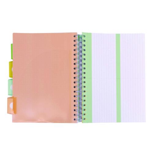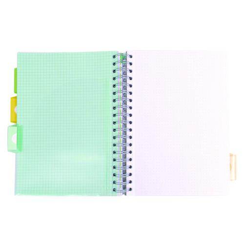Wirebound excellence! Sturdy, subject-divided notebooks feature premium quality, bright white paper stock, allowing you to use a variety of pen types without worrying about ink bleed-through. Use both sides of each sheet without worry. Twin-wire spine makes it easy to fold the hard cover back flat, enabling notetaking on the go, even when no writing surface is available. Repositionable dividers can be configured and reconfigured again and again, an ideal feature for busy students taking notes across several subjects or courses. Slightly smaller than the American 8.5 x 11, letter-size standard, European B5 books might fit a bit more easily into briefcases and backpacks.