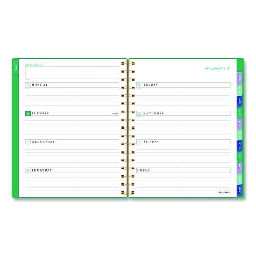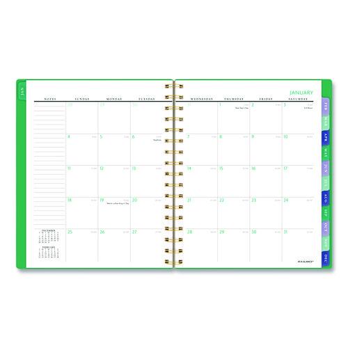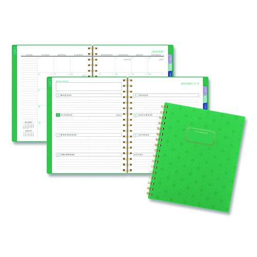 Product Details** Global Product Type Appointment Book/Personal Organizers Dated Yes Academic Year No Calendar Format Weekly/Monthly Edition Year 2026 Calendar Term 13-Month (Jan-Jan) Binding Type Wire-O Color Family Green Refillable No Calendar Spread Format One Week per Two-Page Spread,One Month per Two-Page Spread Julian Dates Yes Size (Bound-Side First) 8.75 x 7 Binding Details Twin-Wire: Flexible Cover Cover Theme Geo Cover Color(s) Green Cover Material(s) Poly Binding Color(s) Gold Appointment Ruling Open Scheduling Separate Sections (7) Contacts Pages,Event Calendar,(6) Notes Pages,Three-Year Reference Calendar Sheet Color(s) White Pocket Details Double-Sided Poly Pocket Reversible No Seasonal Availability Yes Age Recommendation Ages 13 and Up Product Biodegradability Indicator N Product Biodegradability in Days 0 Product Compostability Indicator N Pre-Consumer Recycled Content Percent 0% Post-Consumer Recycled Content Percent 0% Total Recycled Content Percent 0% Disclaimer Statement ACCO Brands will replace any defective AT-A-GLANCE planner that is returned within one year from date of purchase or delivery, whichever is longer. This guarantee does not cover damage due to misuse or abuse. Contact ACCO Brands Consumer Affairs for instructions. Country Of Origin VN Carton Weight 11 lbs. Carton Pack Quantity 12 EA Pack Quantity 0 UPC 038576414822 UNSPSC 44112004 Shipping Weight & Item Dimensions Weight 0.92 lbs. Length 0.75 in Height 8.75 in Width 7.75 in