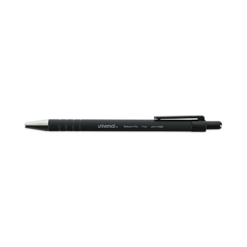 Universal™ Retractable Ballpoint Pen features a rubberized barrel with ringed, no-slip grip that’s easy to hold. The stable and rubberized barrel provides exceptional comfort and a secure grip for precision writing. The quick-drying, water-resistant ink won’t smear or run, keeping your documents safe and legible. The retractable pen protects pockets and purses by keeping ink inside the pen when closed.