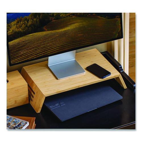 Elevate your workspace with this bamboo monitor stand. It can be used in a range of workspaces and easily provides height and organization to any desk. The stand allows for a monitor to be at the right height, which improves posture and reduces headaches and neck strain that can come with improper monitor height. The space underneath the monitor can be used for storage, which creates more space and organization. The bamboo construction is durable and made to last. It’s also stylish and fits with any home or office.