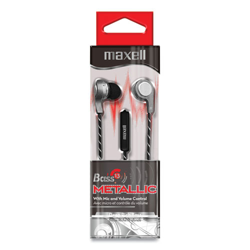 Bass 13 Metallic Earbuds with Microphone, 4 ft Cord, Silver