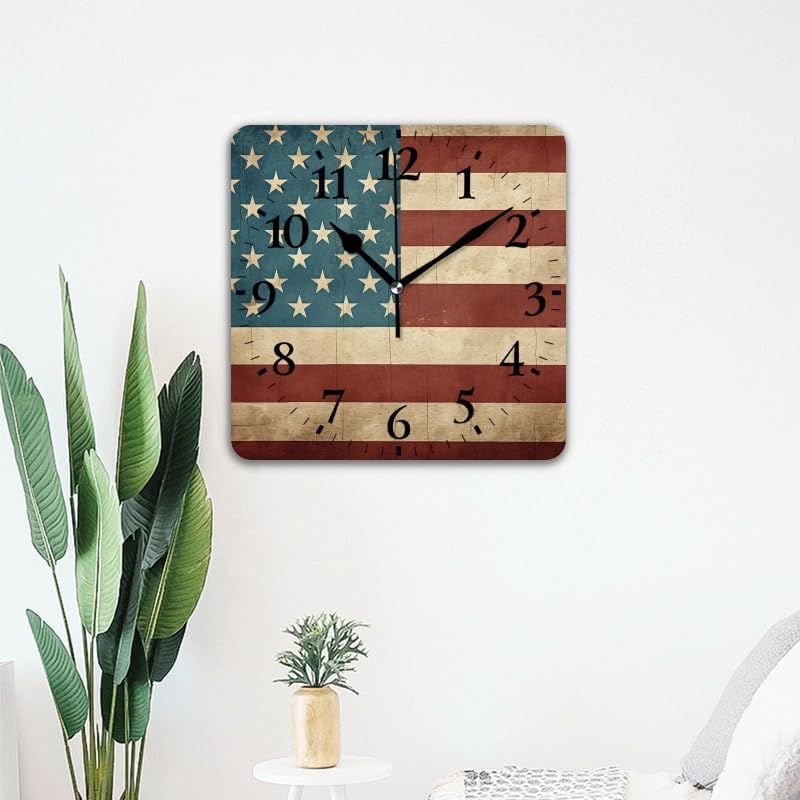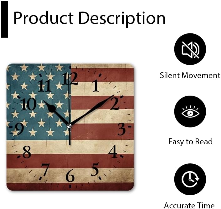 Best Selling Products, Classroom Supplies, Electronics, Faculty & Office Furniture, Faculty & Office Furniture, General Office Accessories, Kyvita, Office SuppliesBattery Operated Wall Clocks Vintage American Flag Background Silent Non-Ticking Decor Clock with Photo for Bathroom,Office(14inch)