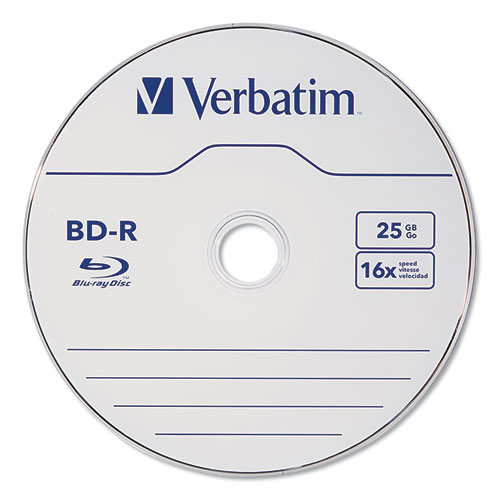 Designed to store large HD video and audio files, Blu-Ray Recordable (BD-R) discs can handle up to 1080p resolution video and multiple audio formats. BD-R discs have a storage capacity of 25GB, allowing you to use fewer discs while backing up or duplicating HD digital recordings. All Verbatim BD-R media features HardCoat to protect against scratches, fingerprints and dust build-up, reducing playback and recording errors. These are one-time record discs, ensuring that your video, music or other information will not be erased. BD-R’s are ideal for recording HDTV programs or backing up your music collection.