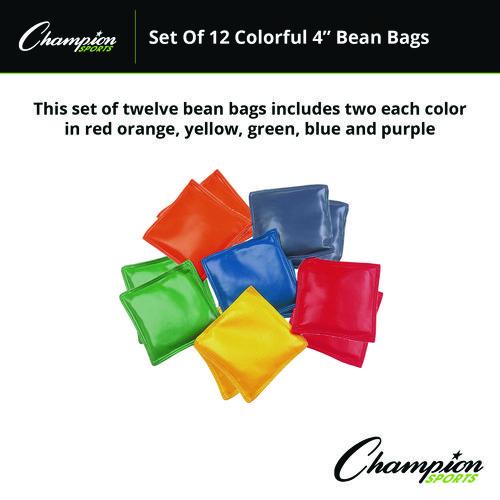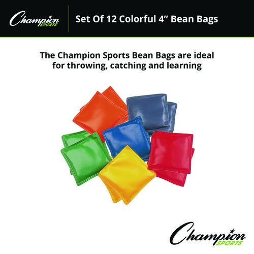 Liven up playtime with the Champion Sports 4″ Bean Bag Set. This pack of 12 bean bags is ideal for young children. Each bean bag is 4″ in size and made with soft, double-reinforced vinyl shells that are comfortable to catch and easy on little hands. Filled with non-toxic plastic pellets, these bean bags are safe for playtime. The set comes in a vibrant mix of colors, including 2 red, 2 orange, 2 yellow, 2 green, 2 blue, and 2 purple. Perfect for tossing games that help develop motor skills and hand-eye coordination.