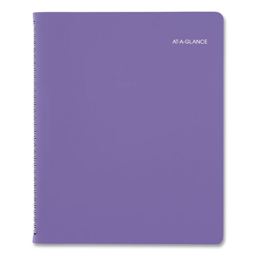 Keep your plans organized behind lavender, soft touch covers. Interior pages feature a watercolor floral design and each quarter of the year is designated by one of four colors. One week per two page spread with ruled planning space lists hourly appointment times from 8:00 a.m. to 5:00 p.m. each weekday. Weekends are condensed and untimed.