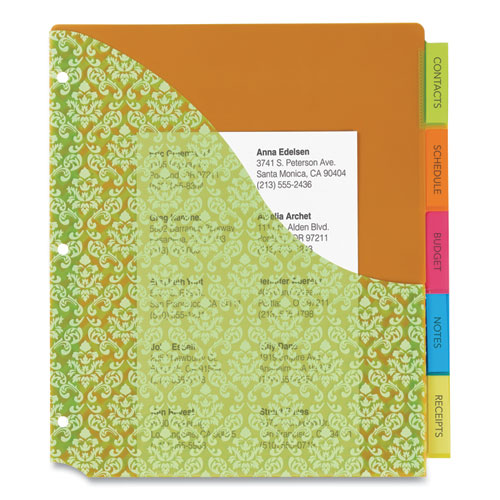 Big Tab Insertable One-Pocket Plastic Dividers, 5-Tab, 11.13 x 9.25, Assorted, 1 Set
