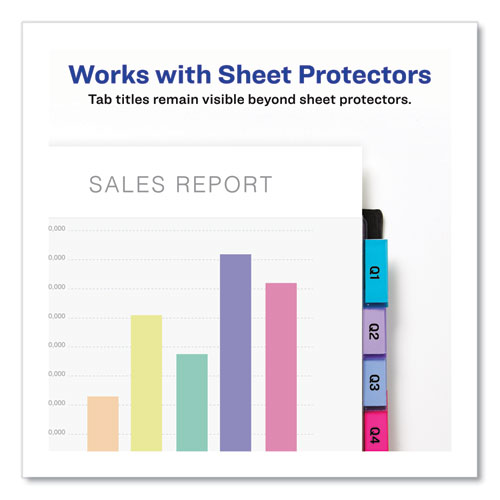 Product Details** Global Product Type Customizable Index Dividers Index Divider Style Customizable Tab Orientation Side Tab Tab Style 8-Tab Color Family Multicolor Punched/Unpunched 3-Hole Punched Index Divider Size 11.13 x 9.25 For Use With Ring Binders Index Divider Material(s) Plastic Index Divider Color(s) Assorted Index Divider Color Assortment Two-Tone Assortment Tab Material(s) Plastic Tab Color(s) Assorted Tab Color Assortment (2) Blue,(2) Orange,(2) Purple,Pink,Turquoise Divider Pocket(s) Front Slash Pocket,Back Slash Pocket Machine Compatibility Inkjet Printers,Laser Printers Index Divider Form Quantity 1 Set Product Biodegradability in Days 0 Pre-Consumer Recycled Content Percent 0% Post-Consumer Recycled Content Percent 0% Total Recycled Content Percent 0% Country Of Origin CN Carton Weight 11 lbs. Carton Pack Quantity 24 ST Pack Quantity 1 ST UPC 072782119836 UNSPSC 44122010 Shipping Weight & Item Dimensions Weight 0.406 lbs. Length 11.306 in Height 0.462 in Width 10.096 in