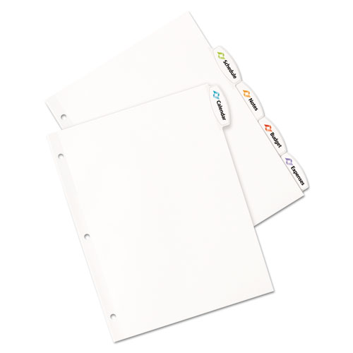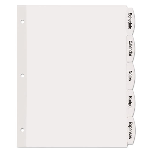 Product Details** Global Product Type Customizable Index Dividers Index Divider Style Customizable Tab Orientation Side Tab Tab Style 5-Tab Color Family White Punched/Unpunched 3-Hole Punched Index Divider Size 11 x 8.5 For Use With Ring Binders Index Divider Material(s) Heavyweight Paper Index Divider Color(s) White Tab Material(s) Reinforced Paper Tab Color(s) White Machine Compatibility Inkjet Printers,Laser Printers Index Divider Form Quantity 20 Sets Product Biodegradability Indicator N Product Biodegradability in Days 0 Product Compostability Indicator N Pre-Consumer Recycled Content Percent 0% Post-Consumer Recycled Content Percent 0% Total Recycled Content Percent 0% Country Of Origin MX Carton Weight 14 lbs. Carton Pack Quantity 6 PK Pack Quantity 20 EA UPC 072782144340 UNSPSC 44122010 Shipping Weight & Item Dimensions Weight 2.084 lbs. Length 11.5 in Height 1.5 in Width 9.5 in