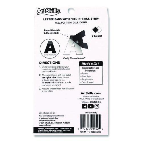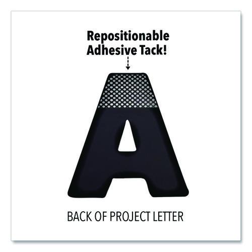 Letters and numbers are re-positionable with a small adhesive strip on each letter.