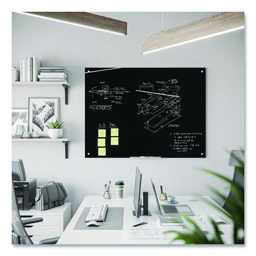 • Enhance your workspace, set your ideas free and boost your productivity with this black glass dry erase board that offers high contrast to neon and bright markers and is an office, classroom, and home deoor must have.