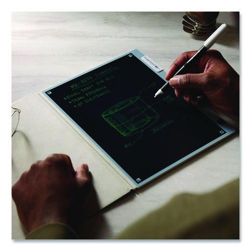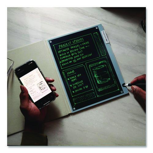 Enjoy endless “pages”, a dark mode writing surface to spark creativity, and high-contrast, vibrant green writing that brings a sense of calm and clarity. Experience the fluidity of a fountain pen with the added benefits of a magnetic Smart Pen holder, an integrated stylus lock-switch function for travel, and a premium folio cover to protect your reusable smart notebook in style. For personal and professional notetaking, instantly transform your written work into digital files that can be saved, revisited and shared at any time. Perfect for home, office and campus use, its slim and lightweight design paired with user-friendly features make it an essential writing tool. Embrace the reusable smart writing solution that saves notes straight to your smartphone. With just a tap of the Smart Pen to the corner of Blackboard 2.0, your notes are saved (as PDF or JPEG files) and ready to be organized thanks to the free Blackboard by Boogie Board app for iOS and Android. Up your productivity game with Blackboard 2.0 thanks to the app’s integration with Dropbox, Google Drive, Evernote, OneNote and OneDrive.