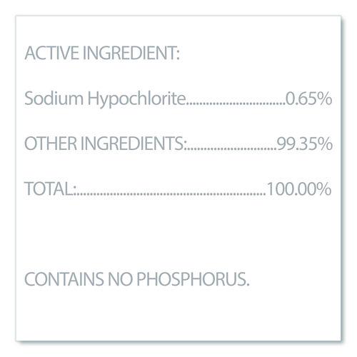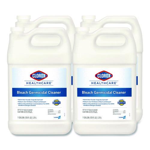 Product Details** Global Product Type Disinfectants/Cleaners Physical Form Liquid Scent Unscented Volume Capacity 128 oz Product Packaging Refill Bottle Application Disinfectant/Cleaner Applicable Material Ceramic,Cement,Fiberglass,Glass,Grout,Laminates,Metal,Plastic,Vinyl Chemical Compound Sodium Hypochlorite Dirt Types Bacteria,Fungus,Germs,Grease,Grime,Mildew,Mold,Organic Matter,Soil,Viruses Product Biodegradability Indicator N Product Biodegradability in Days 0 Product Compostability Indicator N Compliance Standards EPA Reg. No. 56392-7,EPA List N Pre-Consumer Recycled Content Percent 0% Post-Consumer Recycled Content Percent 0% Total Recycled Content Percent 0% Disclaimer Statement For Healthcare Facilities Only Special Features Value Pack-Stock up and save! Country Of Origin US Carton Weight 36 lbs. Carton Pack Quantity 4 EA Pack Quantity 0 UPC 729969689780 UNSPSC 47131803 Shipping Weight & Item Dimensions Weight 36 lbs. Length 15.19 in Height 8.69 in Width 12.75 in