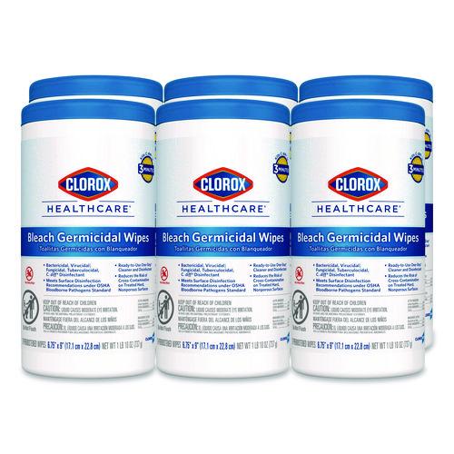 Bleach Germicidal Wipes, 1-Ply, 6.75 x 9, Unscented, White, 70/Canister, 6 Canisters/CartonBleach Germicidal Wipes, 1-Ply, 6.75 x 9, Unscented, White, 70/Canister, 6 Canisters/Carton