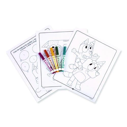 Inspire little ones to share in their favorite pup’s abundance of energy, imagination and curiosity as they color and decorate her funny, unpredictable adventures. With 32 coloring pages, over 50 stickers and five Pip-Squeaks® markers, the Bluey Color & Sticker Activity Set from Crayola® has everything you need to turn the dreariest rainy day into the most wonderful play day. The included folder-style storage container keeps everything safe and organized for on-the-go entertainment, so children can keep Bluey, Bandit, Chilli, Bingo and all the others with them, wherever they roam. Loose coloring sheets make it easy for kids to share and display their favorite scenes. No tearing necessary! Safe and nontoxic, this set’s a great gift idea for any Bluey fan.