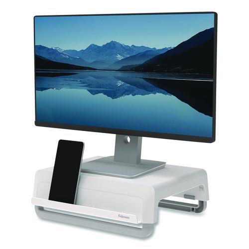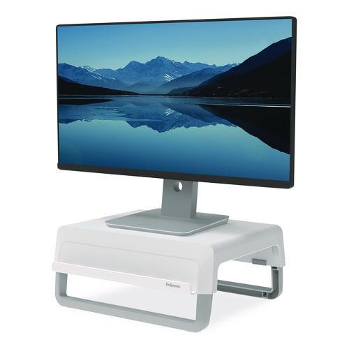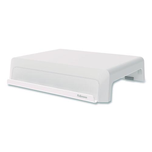 Product Details** Global Product Type Desktop Monitor Stands OEM/Compatible Compatible Workstation Type Traditional Desk/Table Monitors Accommodated 1 Color Family White Number of Shelves 1 Series Name Breyta™ Collection Width (Max) 13.94″ Depth (Max) 11.97″ Height (Min) 3.23″ Height (Max) 5.9″ Weight Capacity 33 lb Color(s) White Material(s) Acrylonitrile Butadiene Styrene (ABS) Shelf Type(s) Adjustable Weight (Fully Assembled) 2.87 lb Product Biodegradability Indicator N Product Biodegradability in Days 0 Product Compostability Indicator N Green Information ABS plastic is 100% recyclable through Fellowes® take-back program. Contact Fellowes® Customer Service for more information. Pre-Consumer Recycled Content Percent 0% Post-Consumer Recycled Content Percent 0% Total Recycled Content Percent 0% Country Of Origin CN Carton Weight 7 lbs. Carton Pack Quantity 2 EA Pack Quantity 0 UPC 043859801954 UNSPSC 43172404 Shipping Weight & Item Dimensions Weight 2.913 lbs. Length 14.7 in Height 3.983 in Width 12.4 in Warranty Manufacturer’s limited five-year warranty.