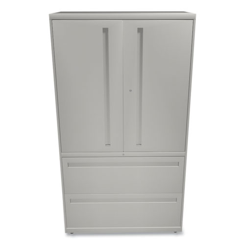 Brigade 700 Series Lateral File, Three-Shelf Enclosed Storage, 2 Legal/Letter-Size File Drawers, Gray, 36" x 18" x 64.25"Brigade 700 Series Lateral File, Three-Shelf Enclosed Storage, 2 Legal/Letter-Size File Drawers, Gray, 36″ x 18″ x 64.25″