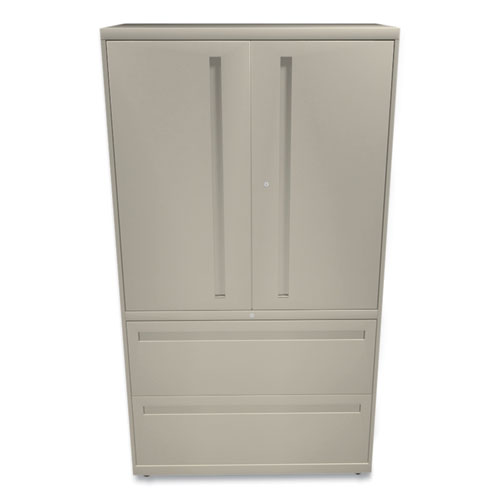 Product Details** Global Product Type Lateral File Cabinets Number of Drawers 2 Drawer Configuration File Anti-Tip Mechanism Indicator Yes Color Family Beige Pedestal Sub-Type Indicator No Caster Indicator No Anti-Tip Mechanism Mechanical Interlock Color(s) Putty Overall Width 36″ Overall Depth 18″ Overall Height 64.25″ Base Material Steel Top Material Steel Glide/Feet Indicator Yes Glide/Feet Details Four Adjustable-Leveling Glides Document Size Accommodation Legal,Letter Additional Compartment Count 3 Additional Compartment Details (2) Enclosed Adjustable Top Shelves,(1) Enclosed Fixed Top Shelf Door Quantity 2 Series Name HON® Brigade® 700 Series Product Biodegradability in Days 0 Compliance Standards Level 2 Certified,Meets or Exceeds ANSI/BIFMA Standards,SCS Indoor Advantage Certified,SCS Indoor Advantage Gold Certified Pre-Consumer Recycled Content Percent 12% Post-Consumer Recycled Content Percent 24% Total Recycled Content Percent 36% Special Features Two Drawers Country Of Origin US Carton Weight 211 lbs. Carton Pack Quantity 1 EA Pack Quantity 0 UPC 020459107440 UNSPSC 56101702 Shipping Weight & Item Dimensions Weight 211 lbs. Length 69.75 in Height 21.5 in Width 38.25 in Warranty Backed by the HON Full Lifetime Warranty.