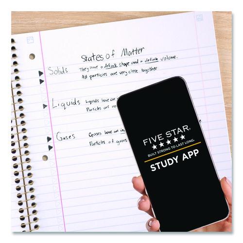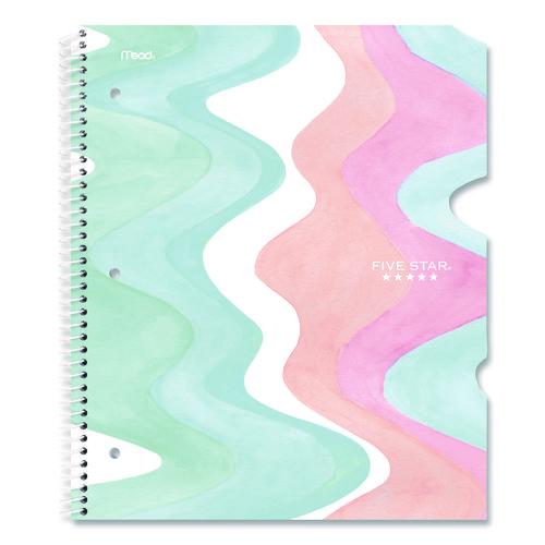 Express yourself this year with a confident and energetic vibe! Durable covers and high-quality paper make it the perfect choice for notetaking and organization. Lasts all year, guaranteed. Features artistic watercolor brush strokes on the cover for a sense of serenity. Scan, study and organize your notes with the Five Star Study App. Create instant flashcards and sync your notes to Google Drive to access them anywhere from any device. Sheets fight ink bleed and are perforated for easy tear out. Tough pockets help prevent tears. Durable, plastic front cover is water-resistant to help protect your notes and our Spiral Lock® wire helps prevent snags on clothes and backpacks. Notebook is recyclable—just remove the reinforcement tape on the pocket and recycle the rest.