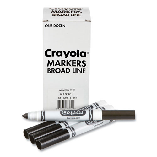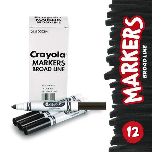 Order your favorite Crayola marker color in bulk! Conveniently packaged in a reusable tuck box, each set contains 12 of the same color. With its conical tip, the Crayola broad-line marker is a versatile drawing tool. Perfect for coloring in large areas, this marker is also great for drawing thin lines or dots. Kids can even create a ribbon effect with lines that taper from thick to thin. The broad-line marker lays down plenty of color and won’t smudge or bleed through paper. Great for classrooms, art studios, and more!