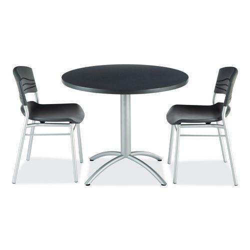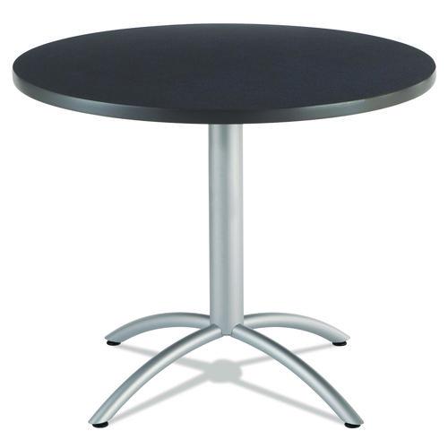 Product Details** Global Product Type Indoor Dining & Cafe Tables Top Shape Round Color Family Black Maximum Weight Capacity Supports Up to 225 lb (evenly distributed) Height (Max) 30″ Base Color Silver Top Color Graphite Granite Top Thickness 1.13″ Diameter 36″ Top Material Melamine Laminate Base/Leg Material Powder Coated Steel Base Type Tubular Arch Base Edge Detail Profile Round T-Mold Edge Caster/Glide/Wheel Four Leveling Glides For Use With Iceberg CafeWorks™ Cafe Chairs Product Biodegradability in Days 0 Compliance Standards Meets or Exceeds ANSI/BIFMA Standards Pre-Consumer Recycled Content Percent 0% Post-Consumer Recycled Content Percent 0% Total Recycled Content Percent 0% Special Features Cafe-Height (30″) Country Of Origin US Carton Weight 54 lbs. Carton Pack Quantity 1 EA Pack Quantity 0 UPC 674785656280 UNSPSC 56101706 Shipping Weight & Item Dimensions Weight 54 lbs. Length 36 in Height 7 in Width 36 in Warranty Manufacturer’s limited 15-year warranty.