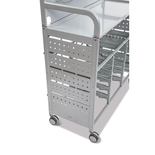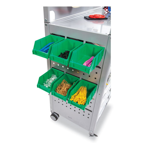 Maneuver safely and easily throughout a learning space. Callero MakerSpace Trolley gives teachers the ultimate flexibility for transporting, storing and dispensing a bespoke collection of materials and resources. Learners of any age can find and access their materials easily as they collaborate around the trolley to invent and create, making MakerSpace the ideal system for a wide range of STEM and STEAM activities. Triple-format, treble-column design incorporates a vertical workboard with BOTT compatible holes and hooks to accommodate a range of hanging storage options, a row of crossbars to accommodate tilted bins, and three columns of StopSafe runners to accommodate pull-out bins. Lightweight yet heavy-duty steel frame’s side panels also feature BOTT compatible holes for extra convenience. And to safely promote student independence, the included StopSafe runners also ensure that the pull-out bins can only be pulled out so far, preventing accidents and messy spills. At the same time, teachers can remove and/or adjust the runners to accommodate any size F-series tray: deep or shallow, either or both in one trolley. To support student-led learning, a smooth steel worksurface gives learners extra elbow room for planning and testing their ideas. Ergonomic loop handles and heavy-duty, smooth-rolling casters (two locking) make it easy to set up the trolley in just about any learning space. For added educator convenience, F1 and F2 bins are compatible with nearly all Gratnells fixed-storage furniture and mobile-storage trolleys, making it a snap to reconfigure your bins and resource areas to the unit or project at hand. With enough foresight, you can even color-code accordingly.
