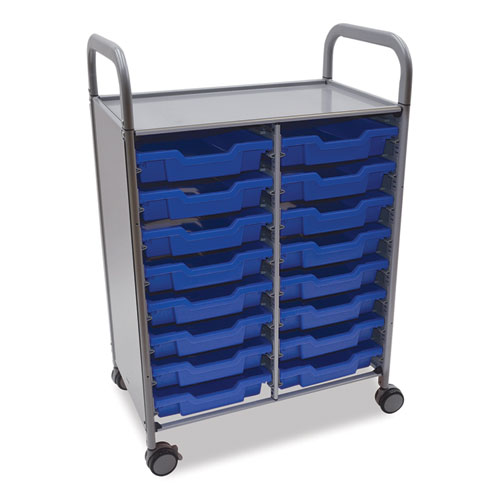 Product Details** Global Product Type Classroom Activity & Storage Carts Overall Material Type Metal Color Family Blue Caster/Wheel Indicator Yes Number of Shelves 1 Bin Quantity 16 Material(s) Plastic,Steel Color(s) Silver/Royal Blue Overall Width 27.4″ Overall Depth 17.3″ Height (Max) 41.5″ Work Surface Height 41.5″ Number of Wheels 4 Caster/Wheel Size 3″ Wheel Type (2) Locking Swivel,(2) Non-Locking Swivel Caster/Wheel Material Plastic Ground Clearance 4″ Handle Quantity 2 Shelf Type(s) Fixed Bin Color(s) Royal Blue Bin Width 12.28″ Bin Depth 16.81″ Bin Height 3.25″ Bin Capacity (Volume) 1.85 gal Bin Capacity (Weight) 11 lb Door Quantity 0 Compartment Handle(s) 16 Lock No Power Management Indicator No Compact Storage Indicator No For Use With Gratnells F1 Shallow Bins,F2 Deep Trays Product Biodegradability Indicator N Product Biodegradability in Days 0 Product Compostability Indicator N Package Includes (16) Royal Blue F1 Shallow Trays,(2) Locking Swivel Casters,(2) Non-Locking Swivel Casters,(4) Glides Pre-Consumer Recycled Content Percent 0% Post-Consumer Recycled Content Percent 0% Total Recycled Content Percent 0% Footnote 1 Weight (Fully Assembled): 60.8 lb Special Features Set 05: 16 F1 Shallow Bins Country Of Origin GB Carton Weight 80 lbs. Carton Pack Quantity 1 ST Pack Quantity 1 EA UPC 000000000000 UNSPSC 24101501 Shipping Weight & Item Dimensions Weight 80 lbs. Length 44 in Height 20 in Width 20 in Warranty Manufacturer’s limited five-year warranty.