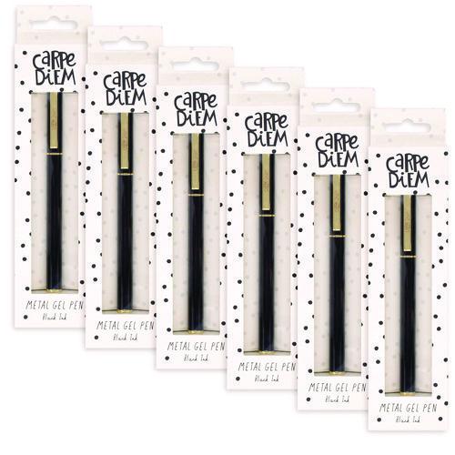 Product Details** Global Product Type Gel Pens Pen Style Stick Pen Tip Type Conical Pen Point Size Type Medium Color Family Black Erasable Ink No Refillable Yes Pen Sub-Brand & Product Family Carpe Diem Metal Pen Type Gel Pen Pen Point Size 0.7 mm Pen Ink Color(s) Black Pen Barrel Color(s) Black Pen Cap Color(s) Black Permanent/Washable Ink Permanent Archival-Quality Ink No Airplane-Safe Ink Yes Low-Viscosity Ink No Pen Grip Type Smooth Visible Ink Supply No Pocket Clip Indicator Yes Manufacturer Pen Refill # Parker Compatible Special Pen Packaging Retail Hang Pack Product Biodegradability Indicator N Product Biodegradability in Days 0 Product Compostability Indicator N Pre-Consumer Recycled Content Percent 0% Post-Consumer Recycled Content Percent 0% Total Recycled Content Percent 0% Country Of Origin CN Carton Weight 14 lbs. Carton Pack Quantity 20 PK Pack Quantity 6 EA UPC 000000000000 UNSPSC 60121524 Shipping Weight & Item Dimensions Weight 0.634 lbs. Length 7.995 in Height 15.21 in Width 2.34 in