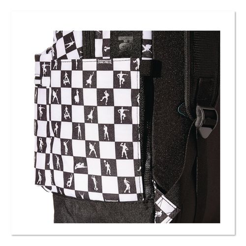 Take your Fortnite fandom with you to school and anywhere you might go. Featuring a checkered pattern and various characters from the game, this backpack has a design that’s as tasteful as it is iconic, making it suitable for fans of all ages. Whether you’re carrying books or personal belongings, its spacious main compartment with internal laptop sleeve and front accessories pocket with internal supplies organizer provide the room you need. And to help ensure carrying comfort, it also features padded adjustable shoulder straps and a quilted back. For added convenience, an expanding side pocket accommodates most water bottles, so you can easily stay hydrated as you explore the world beyond the walls.
