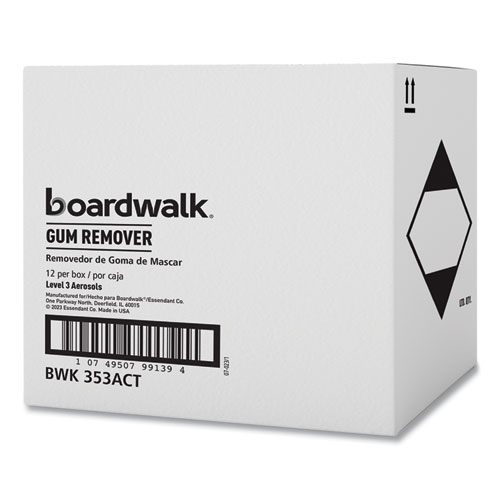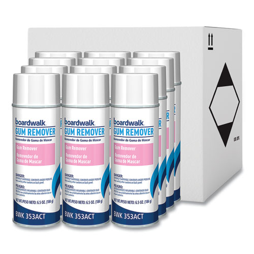 Boardwalk Chewing Gum and Candle Wax Remover helps remove unsightly, messy gum and candle wax residue by freezing for easy removal. Tackle stubborn messes from gum and candle wax with an easy-to-use aerosol spray. Can be sprayed directly onto the surface. For use on tables, chairs, floors, and nonporous surfaces. Also works on ceramics, fiberglass, finished wood, glass, laminates, metal, plastic, and vinyl. Unscented, liquid cleaner.