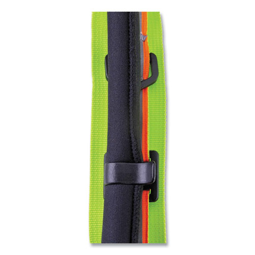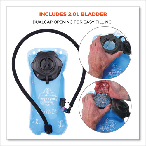 The Chill-Its 5155 Low Profile Hydration Pack provides convenient on-the-go hydration from workday to weekend. The 2-liter bladder features a wide DualCap for easy no-spill filling with water or ice. Both the pack and tube are insulated to keep water cool in the heat. The antimicrobial bite valve with cover protects against contaminants for clean all-day drinking. The lightweight and low-profile design is comfortable for wear both on and off the worksite. The pack itself is made with durable 600D water-resistant ripstop polyester for protection in rough conditions. A zippered top closure keeps the bladder secure while also preventing dirt and debris from getting into the pack. Breakaway hook-and-loop shoulder straps safely detach to prevent the pack from dangerously snagging. The water bladder can be thoroughly cleaned using the Chill-Its 5159 Hydration Pack Cleaning Kit (sold separately).