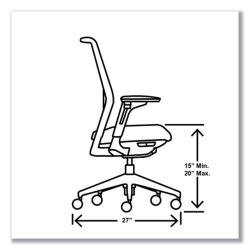 Product Details** Global Product Type Office Chairs Color Family Gray Arms Included Yes Pneumatic Seat Height Adjustment Yes Tilt Tension/Tilt Lock Yes Integral Lumbar Support Yes Seat Surface Material Family Fabric Recommended Application Area(s) General Office & Task Seat Color Basalt Back Color Charcoal Arm Type T-Bar Weight Capacity Supports Up to 300 lb Back Height Adjustment No Seat Glide Mechanism No Knee Tilt Yes Synchronized Knee Tilt No Dual-Action Tilt No Posture Lock Yes Multi-Task Control No Asynchronous Control No Dual-Clutch Posture Control No Variable Synchro-Tilt No Arm Adjustability Height,Width Armrest Color Charcoal Armrest Material Plastic Distance Between Arms 18.81″ Overall Width Maximum 27″ Overall Depth Maximum 26.75″ Overall Height Minimum 38.51″ Overall Height Maximum 43.13″ Seat Width Maximum 19.5″ Seat Depth Maximum 18″ Seat Height Minimum 15″ Seat Height Maximum 20″ Seat Surface Material Fabric Seat Fill Material Foam Back Width Maximum 18.75″ Back Height Maximum 24.02″ Back Surface Material Mesh Back Surface Material Family Mesh Base/Frame Color Charcoal Base/Frame Material(s) Plastic Caster/Glide Details Five Dual-Wheel Casters Caster/Glide Surface Texture Hard Compatible Flooring Type(s) Carpet,Hard Floor Book Box Indicator No Weight (Fully Assembled) 26 lbs Product Biodegradability Indicator N Product Biodegradability in Days 0 Product Compostability Indicator N Compliance Standards Meets or Exceeds ANSI/BIFMA Standards Pre-Consumer Recycled Content Percent 0% Post-Consumer Recycled Content Percent 0% Total Recycled Content Percent 0% Disclaimer Statement Casters supplied with this chair are not suitable for all floor types. Country Of Origin MX Carton Weight 44 lbs. Carton Pack Quantity 1 EA Pack Quantity 0 UPC 196785942205 UNSPSC 56101720 Shipping Weight & Item Dimensions Weight 44 lbs. Length 23 in Height 23 in Width 26 in Warranty Backed by the HON Full Lifetime Warranty.