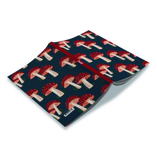Classic Layflat Softcover Notebook, Mushroom Artwork, Medium/College Rule, Navy Blue/Multicolor Cover, (72) 8 x 5 Sheets