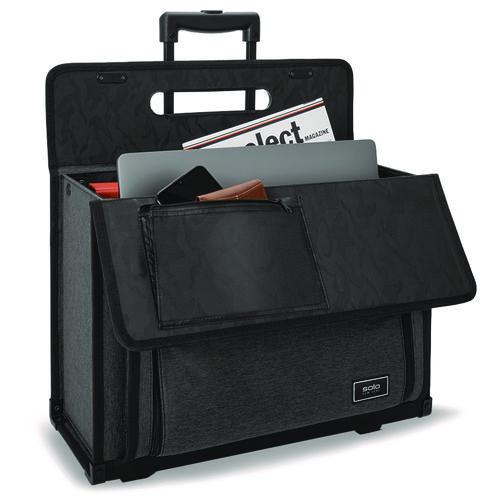 Are you looking for a reliable and stylish way to carry your laptop and essential documents? Look no further than the Solo Classic Recycled Rolling Catalog Case. This polished collection features sleek lines and smart details that are ideal for the office and business travel. Made with recycled PET polyester, the case fits devices up to 17.3″ and features a hanging file system, dual combination locks, and checkpoint friendly design. With its durable construction and multiple compartments, this case is perfect for professionals and travelers alike.