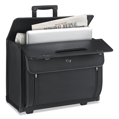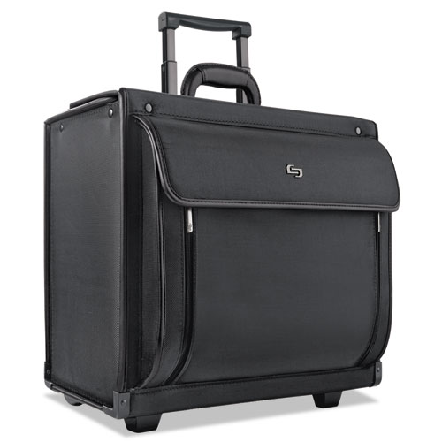 Fully padded 16″ laptop compartment. Full size front zip-down organizer section and file pocket. Dual combination locks. Sturdy carry handle. Telescoping handle system.
