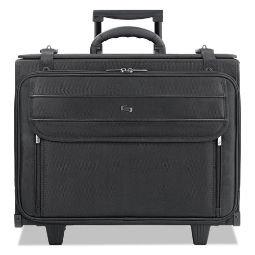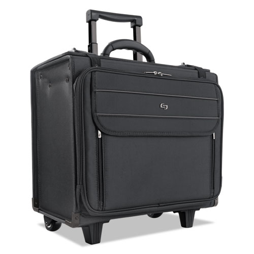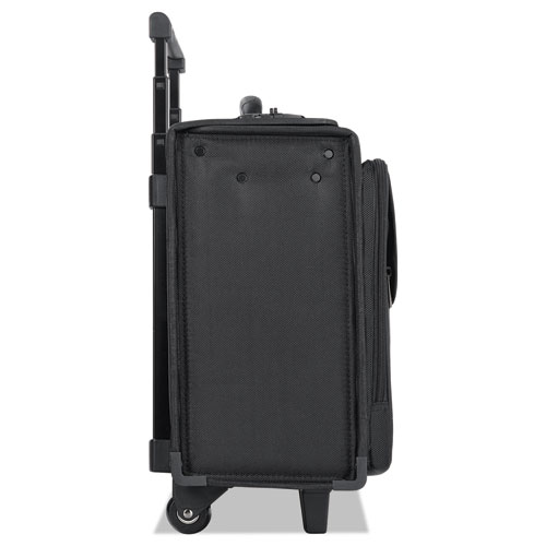 Features hanging file system. Removable fully padded 17.3″ laptop sleeve. CheckFast™ sleeve design allows you to pass through airport security faster. Full size front zip-down organizer section and file compartment. Sturdy carry handle. Telescoping handle system. Speed buckle closure.
