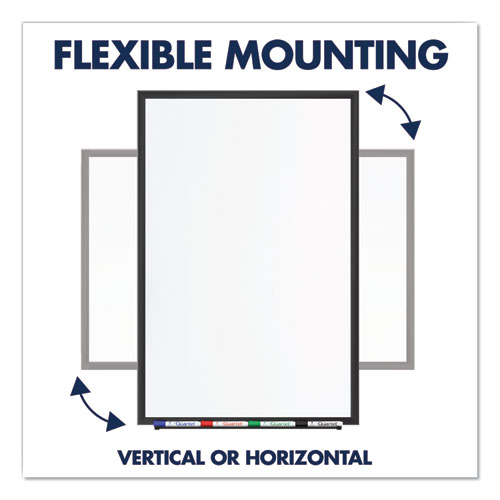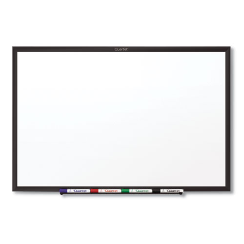 Product Details** Global Product Type Dry Erase Boards – Wall-Mount Board Surface Type(s) Dry Erase Magnetic Board Surface No Surface Use Rating Moderate Use Surface Material Total Erase® Laminate Surface Color White Dedicated Projection Screen No Flipchart Mounting System No Supports Custom Surface Formatting No Frame Material Aluminum Frame Color/Finish Black Board Width 60″ Board Height 36″ Preformatted Board Surface No Mounting Details Z-Bracket Horizontal/Vertical Wall-Mount Hardware (Included) Product Biodegradability in Days 0 Package Includes (1) Quartet® Dry Erase Marker,Mounting Hardware Pre-Consumer Recycled Content Percent 0% Post-Consumer Recycled Content Percent 0% Total Recycled Content Percent 0% Country Of Origin CN Carton Weight 24 lbs. Carton Pack Quantity 1 EA Pack Quantity 0 UPC 034138200339 UNSPSC 44111905 Shipping Weight & Item Dimensions Weight 23.5 lbs. Length 65.13 in Height 2 in Width 39.5 in Warranty Manufacturer’s three-year warranty.