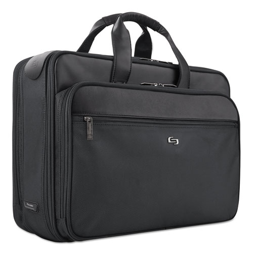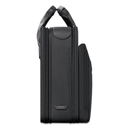Fully padded 16″ laptop compartment. Smart Strap® shoulder strap automatically retracts into case. Full length front zippered pocket. Full size front zip-down organizer section. File compartment. Padded carry handles. Back strap slides over luggage handle.