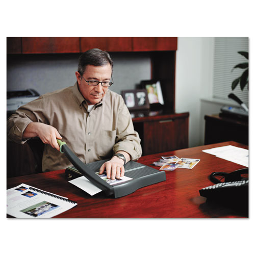 ClassicCut Lite is a general purpose paper cutter with a guillotine style blade and is ideal for occasional use. It is sharp enough to accurately trim cardstock, construction paper and photos. Alignment grid and dual-scale, SAE and metric ruler for precise measuring. Conveniently sized, lightweight and portable. Safety features include protective guard rail and blade latch hook.