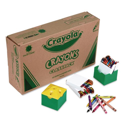 Product Details** Global Product Type Wax Crayons Color Family Multicolor Size Group Standard Age Recommendation Ages 4 and up Crayon Size 3.63″ x 0.31″ Color(s) Assorted Color Assortment 64 Assorted Colors Temp. Range Soften at 105° F,Melt at 128° F Product Biodegradability in Days 0 Compliance Standards ACMI AP Non-Toxic Certified,Conforms to ASTM D 4236 Pre-Consumer Recycled Content Percent 0% Post-Consumer Recycled Content Percent 0% Total Recycled Content Percent 0% Special Features 64 colors, 13 of each color, sharpener included Country Of Origin US Carton Weight 12 lbs. Carton Pack Quantity 832 EA Pack Quantity 0 UPC 071662080198 UNSPSC 44121709 Shipping Weight & Item Dimensions Weight 11.75 lbs. Length 16.75 in Height 4.13 in Width 9.75 in