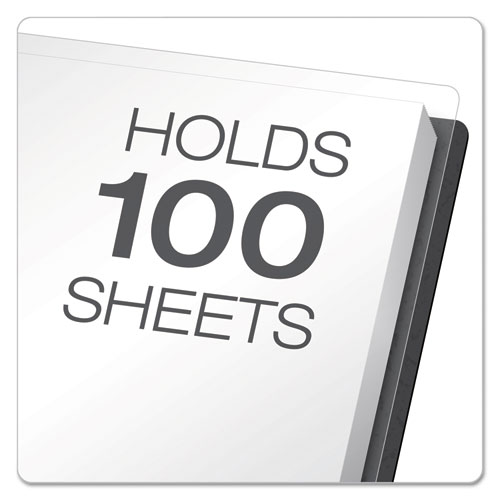 Product Details** Global Product Type Tang/Prong Binding Report Covers Fastener Type Three-Prong Fastener Sheet Type Punched Sheet Size 8.5 x 11 Color Family Clear Back Cover Color(s) Black Front Cover Color(s) Clear Capacity Range [Max] 0.5″ Sheet Capacity 100 Report Cover Quantity 25 Cover Material(s) Paper,Polypropylene Spine Color(s) Black Fastener Material Metal Number of Fasteners 3 Product Biodegradability in Days 0 Post-Consumer Recycled Content Percent 10% Total Recycled Content Percent 10% Country Of Origin MX Carton Weight 13 lbs. Carton Pack Quantity 125 EA Pack Quantity 0 UPC 078787558069 UNSPSC 44122013 Shipping Weight & Item Dimensions Weight 1.88 lbs. Length 12.1 in Height 2.4 in Width 9.9 in