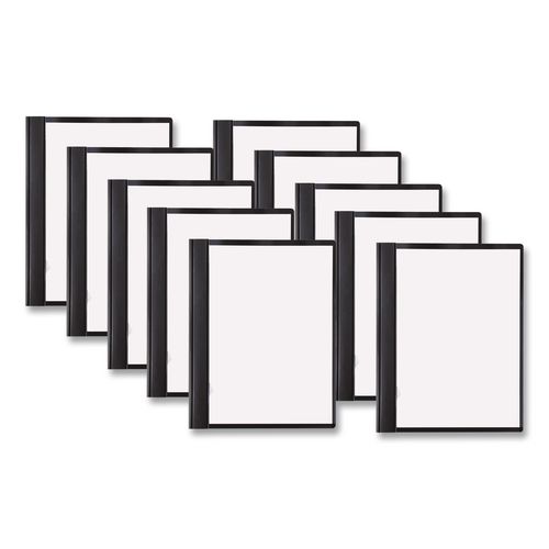Product Details** Global Product Type Tang/Prong Binding Report Covers Fastener Type Prong Fastener Sheet Type Punched Sheet Size 8.5 x 11 Color Family Clear Back Cover Color(s) Black Front Cover Color(s) Clear Capacity Range [Max] 0.5″ Sheet Capacity 100 Report Cover Quantity 10 Cover Material(s) Vinyl Spine Color(s) Black Fastener Material Metal Number of Fasteners 1 Product Biodegradability in Days 0 Pre-Consumer Recycled Content Percent 0% Post-Consumer Recycled Content Percent 0% Total Recycled Content Percent 0% Country Of Origin CN Carton Weight 7 lbs. Carton Pack Quantity 5 PK Pack Quantity 10 EA UPC 050505261017 UNSPSC 44122013 Shipping Weight & Item Dimensions Weight 1.25 lbs. Length 11.7 in Height 1.1 in Width 9.1 in