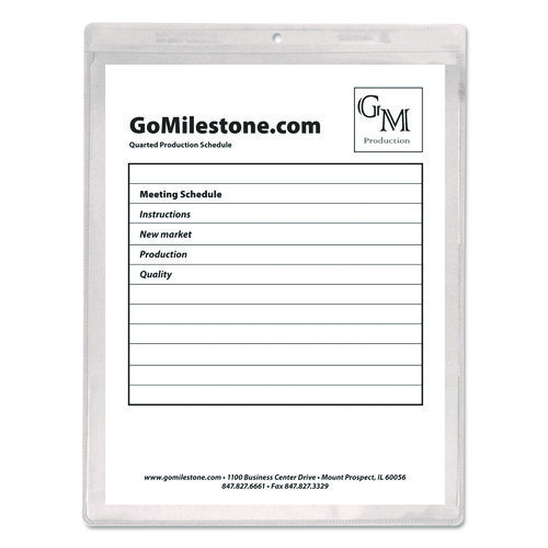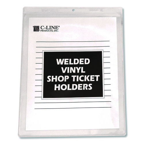 Keep job tickets, work orders, product schedules, inventory cards and more secure and protected. Super-heavyweight welded-vinyl construction and non-rip seams stand up to even the roughest use environment. Punched hole at the top allows for convenient hanging, making it easy to keep important information accessible. Clear on both sides, C-Line® Clear Vinyl Shop Ticket Holders are also ideal for two-sided documents. This product will be cheerfully replaced with one of equal value if defective in materials, manufacturing or packaging at the time of purchase.