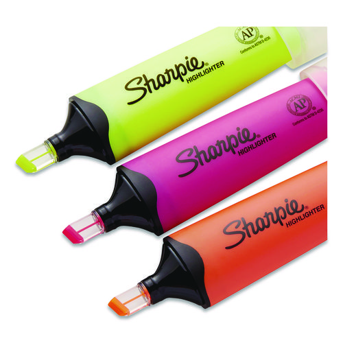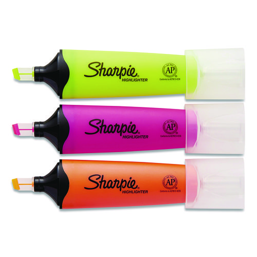 Product Details** Global Product Type Stick Highlighters Highlighter Style Flat Tank Color Family Multicolor Highlighter Tip Type Chisel Highlighters Erasable Ink No Retractable No Pocket Clip Indicator No Highlighter Ink Color Assorted Highlighter Ink Color Assortment Orange,Pink,Yellow Highlighter Barrel Color Assorted Highlighter Barrel Color Assortment Orange/Black/Clear,Pink/Black/Clear,Yellow/Black/Clear Grip Type Smooth Product Biodegradability in Days 0 Pre-Consumer Recycled Content Percent 0% Post-Consumer Recycled Content Percent 0% Total Recycled Content Percent 0% Country Of Origin US Carton Weight 6 lbs. Carton Pack Quantity 36 PK Pack Quantity 3 EA UPC 071641074897 UNSPSC 44121716 Shipping Weight & Item Dimensions Weight 0.114 lbs. Length 7.44 in Height 0.736 in Width 4.769 in