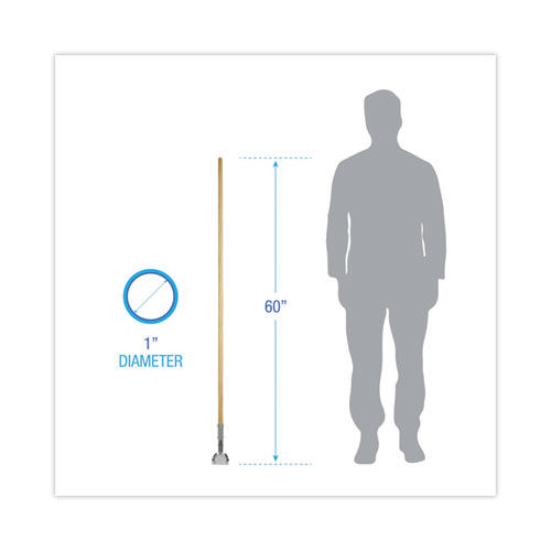Clip-on Dust Mop Handle quickly and easily snaps onto Boardwalk® Clip-On Dust Mop Frame from standing position. Built from 12-gauge zinc-plated steel hardware for the ultimate in strength and durability. Includes a 180° swivel head with sliding nylon lock that clamps the mop firmly into place. Double-lacquered wood handle is sturdy and long-lasting. Dust mop head and frame are sold separately.