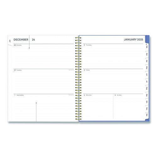 Product Details** Global Product Type Appointment Book/Personal Organizers Dated Yes Academic Year No Calendar Format Weekly/Monthly Edition Year 2025 Calendar Term 12-Month (Jan to Dec) Binding Type Wire-O Color Family Multicolor Refillable No Calendar Spread Format One Week per Two-Page Spread,One Month per Two-Page Spread Julian Dates No Size (Bound-Side First) 11 x 8.5 Binding Details Twin-Wire: Flexible Cover Cover Theme Pastel Paisley Artwork Cover Color(s) Blue/Pink/White Cover Material(s) Poly Binding Color(s) Gold Appointment Ruling Open Scheduling Calendar Reference Blocks One Past Month,One Future Month Separate Sections (6) Bonus Past-Year Monthly Spreads (July-Dec),Contacts Page,Important Dates Page,Ruled Notes Pages,States & Capitals Map,Two-Year Holidays List,Two-Year Reference Calendar,Yearly Goals Sheet Color(s) White Pocket Details (1) Interior Storage Pocket Reversible No Product Biodegradability Indicator N Product Biodegradability in Days 0 Product Compostability Indicator N Pre-Consumer Recycled Content Percent 0% Post-Consumer Recycled Content Percent 0% Total Recycled Content Percent 0% Country Of Origin CN Carton Weight 8 lbs. Carton Pack Quantity 6 EA Pack Quantity 0 UPC 699931910696 UNSPSC 44112004 Shipping Weight & Item Dimensions Weight 1.145 lbs. Length 11 in Height 0.6 in Width 8.5 in