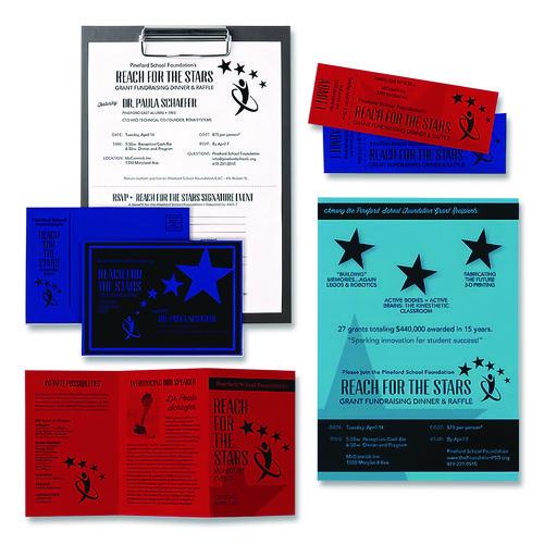 When you need to stand out with bold, high-impact color in a durable cover weight, Astrobrights® Colored Card Stock is a brilliant choice. It’s thick enough to stand up to frequent handling and the rigors of postal machines, yet it’s smooth enough to work with inkjet and laser printers. Since this unique colored paper is highly saturated, it offers a bright background for your creativity to come to life. Easily create dazzling postcards, booklet covers, presentation bindings and paper crafts. Brighter colors. Brighter ideas.™ Can’t decide on just one high-impact color? With the Astrobrights® “Patriotic” Assortment, you don’t have to. In each pack, you’ll get four, single, solid colors. Get ready for your most creative ideas to really take off when you pair it with Astrobrights® Color Paper for a unified and consistent look to your project, or pair it with other Astrobrights® Colors or Neenah® Bright White Card Stock for a bold, brilliant impact. According to studies conducted by the American Paper Institute and the Color Marketing Group, color increases written information retention by 18 percent, improves readership by as much as 40 percent; and for direct mail, color increases response rates by up to 20 percent.